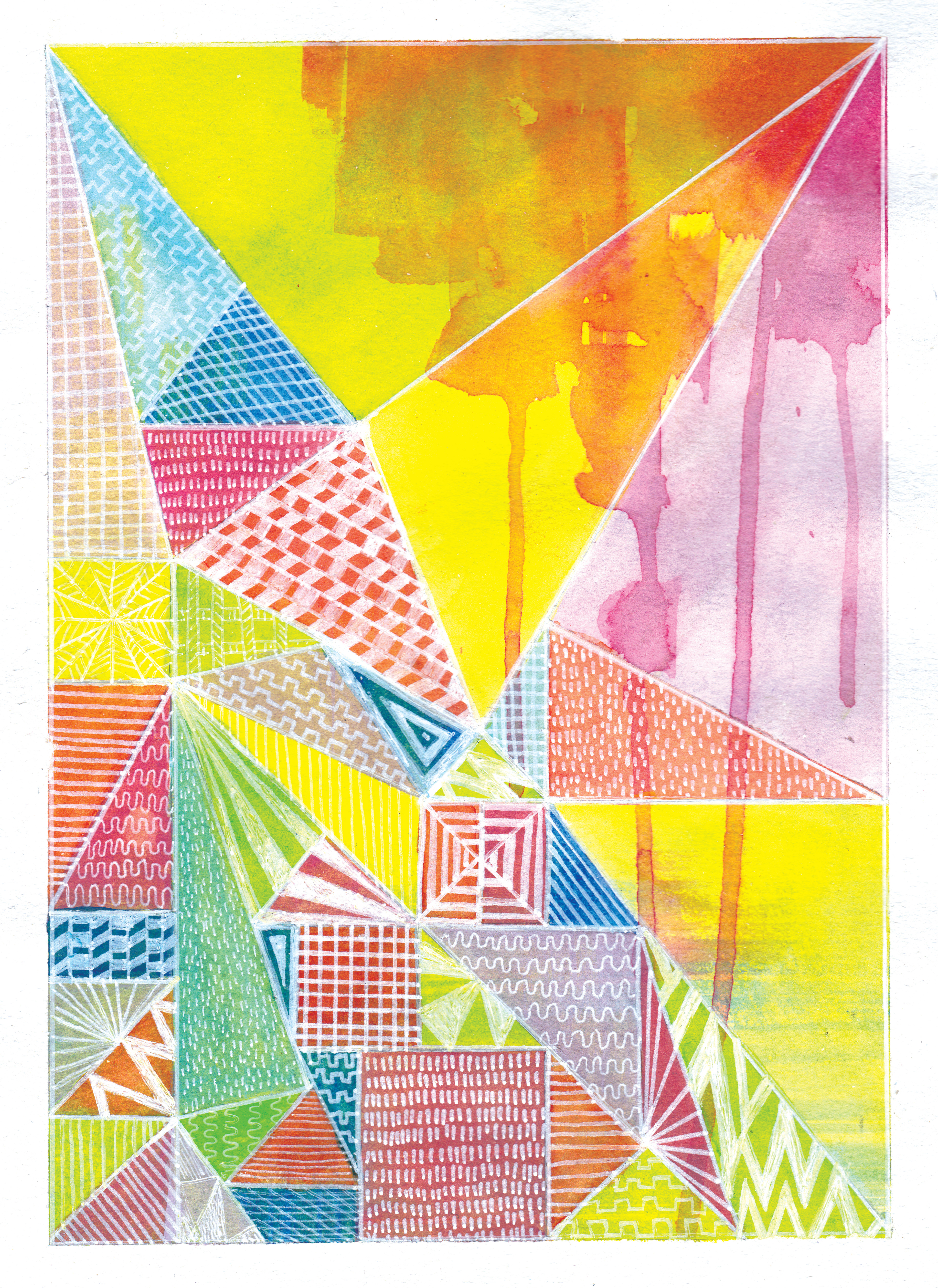 Tinta blanca sobre acuarela en papel de algodón