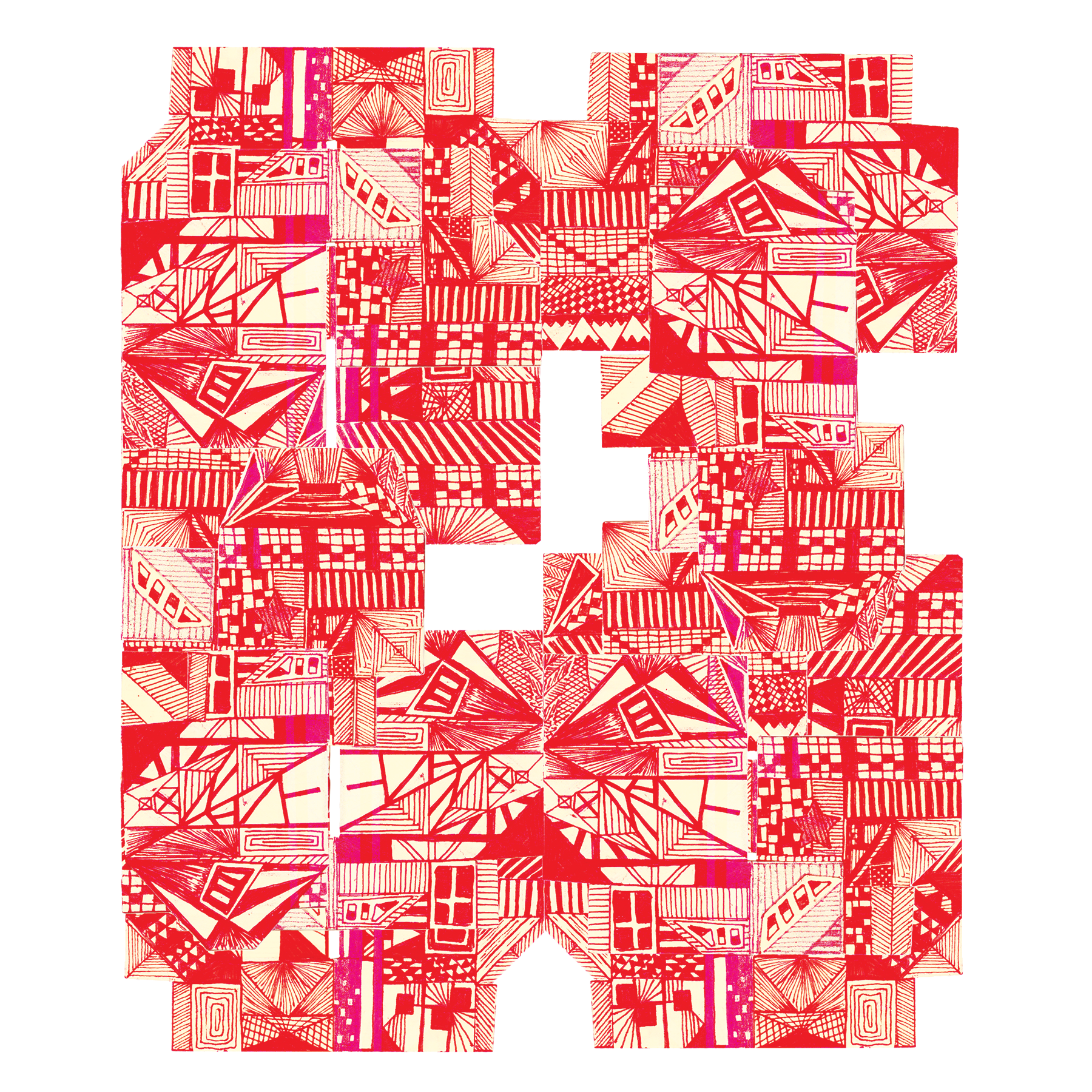acuarela, plumón, estampas, recorte sobre algodón